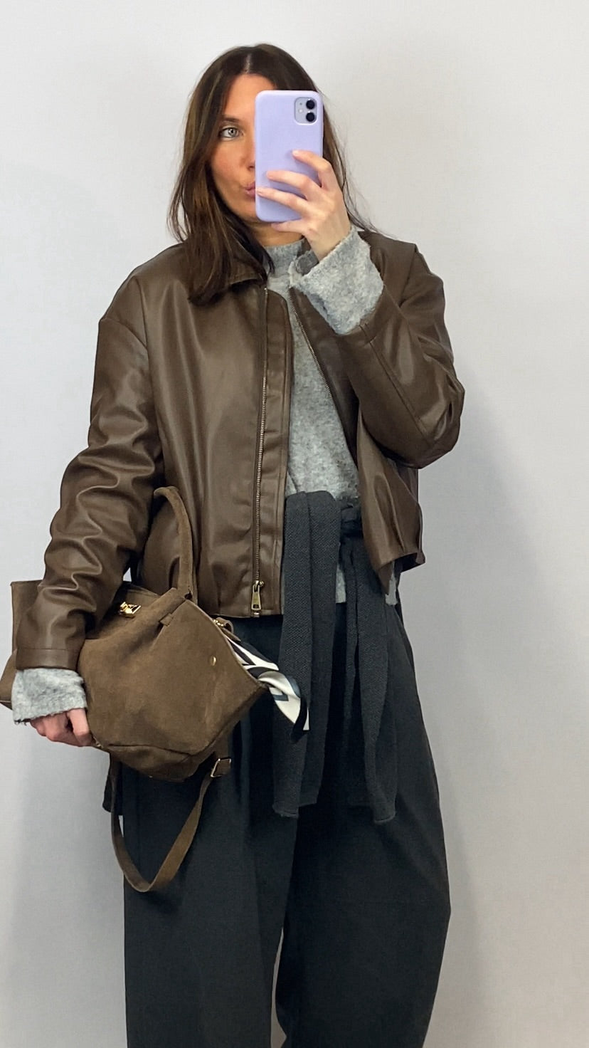 Veste bomber simili cuir marron